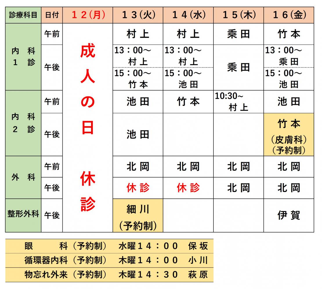 月間診療予定表