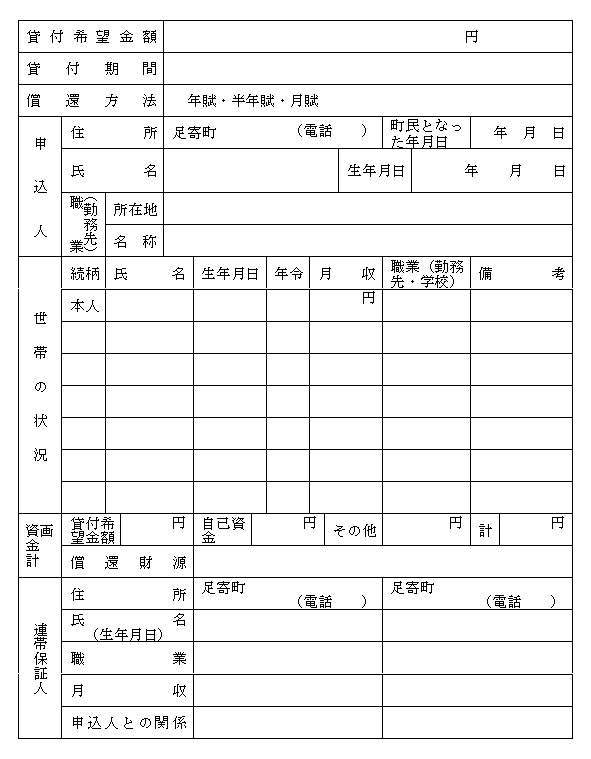 第4条 申込人が整備資金の貸付けを受けようとするときは、足寄町内に住所を有する保証人2人をつけなければならない。