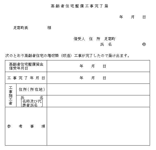 第9条 条例第6条の規定による工事の完成届は、高齢者住宅整備工事完了届(