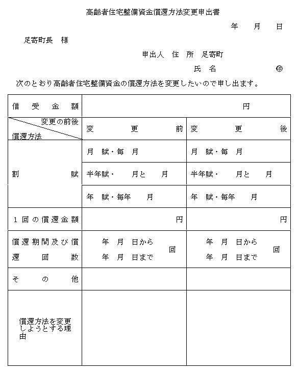 2 借受人は、高齢者住宅整備資金借用証書に記載した、償還方法を変更しようとするときは、高齢者住宅整備資金、償還方法変更申出書(