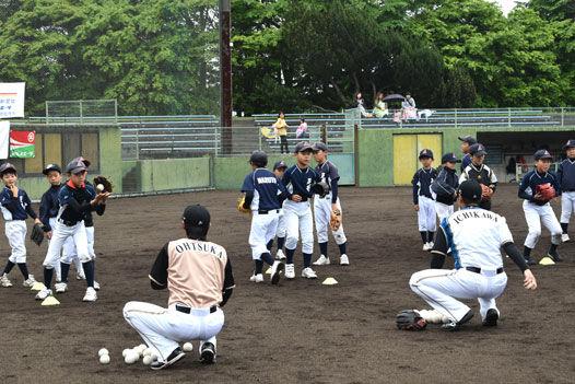午前中は町内の野球少年団「足寄スラッガーズ」を、午後からは足寄中学校の野球部を対象に、日本ハムファイターズアカデミーの市川卓コーチと大塚豊コーチから実技指導を受けました。ウオーミングアップやキャッチボールの後、バッティング指導が行われなど、元プロ野球選手から直接指導を受ける貴重な機会となりました。