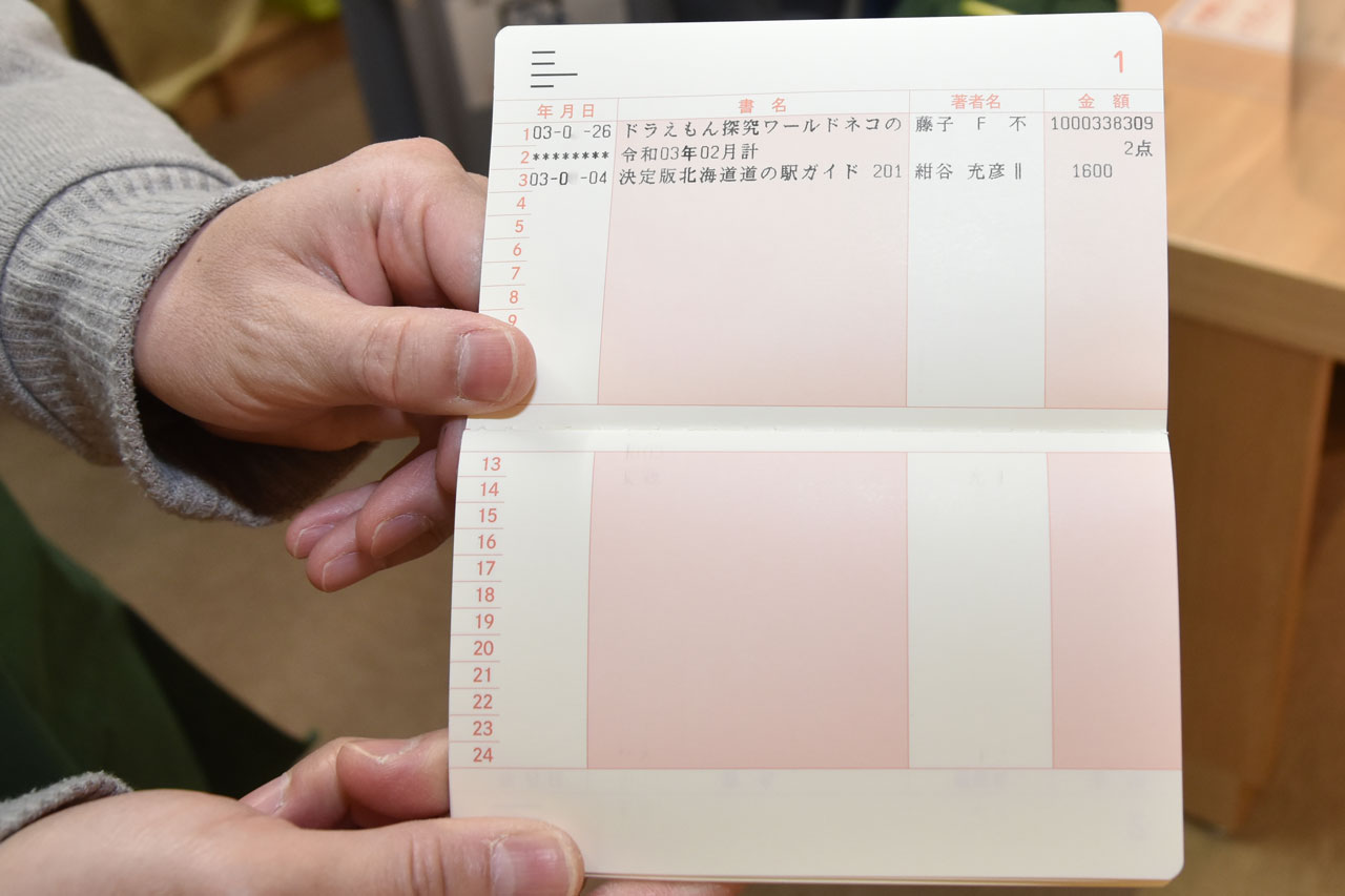 本の通帳は、本を借りた日・書名・著者名・本の金額が専用の記帳機で印字され、過去に何を借りたか、シリーズをどこまで読んだかなど、借りた本の思い出しにも役立ちます。