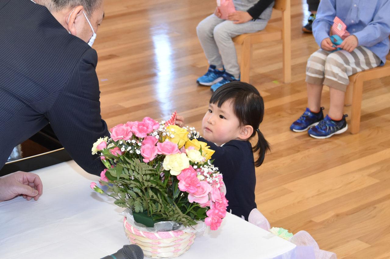 式では鈴木所長が「入園おめでとうございますこれから芽登保育所でお兄さんお姉さんたちと元気いっぱい遊んでください」とあいさつしました。