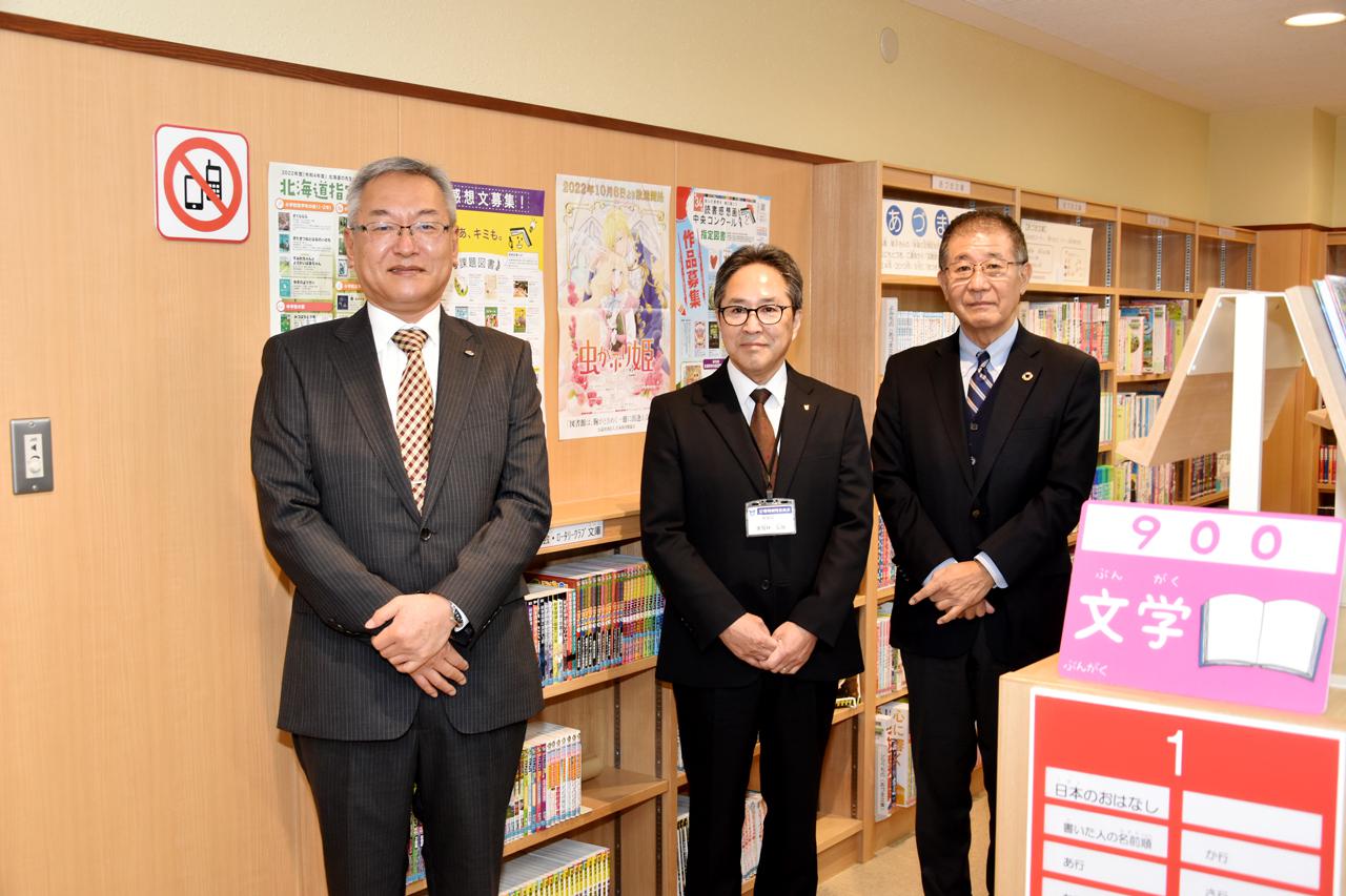 寄附を受けた東海林教育長は「毎年、継続して寄附をいただきありがとうございます」と感謝を述べました。また寄附を行った佐藤会長は「来年以降も継続して寄附できるようにしたい」丸山会長は「寄附が子どもたちのためにお役にたてればと思います」と述べました。