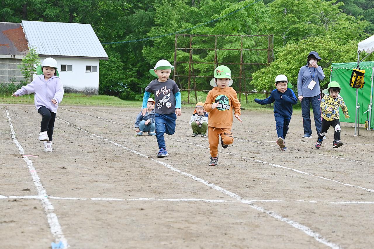 螺湾小学校(竹島浩校長)と螺湾保育所で合同運動会が開催され、渡辺俊一町長など来賓や多くの保護者、地域住民の方が観覧しました。