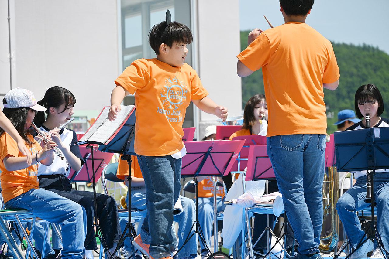 町民ステージでは、オープニングに足寄雌阿寒太鼓保存会による勇壮な太鼓の演奏、町内の小中高校の吹奏楽部がダンスや歌を交えた演奏を披露し、来場した観客を楽しませていました。