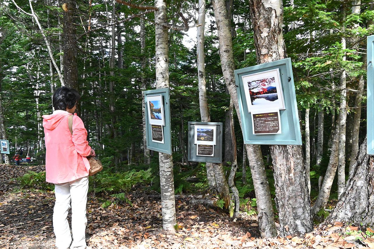 オンネトーの散策路で自然に親しむふれあい教室では、オンネトー湖畔遊歩道コースと湯の滝遊歩道コースに分かれて子どもから大人まで森林浴を楽しみました。
