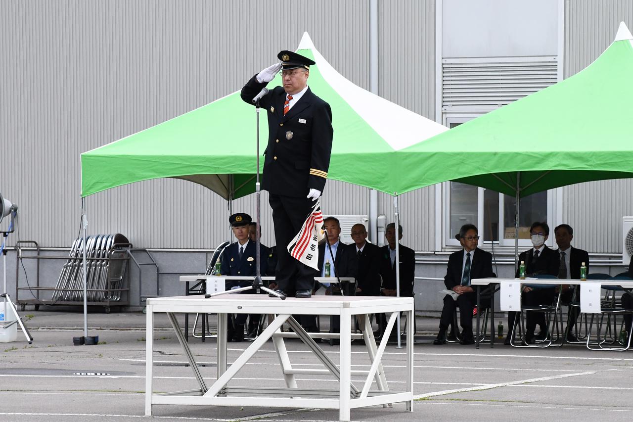 坂井団長は「4月に消防団長となりましたが、地域防災活動にまい進していきたいと思っています。気象変動や生活様式の変化により、ひと昔では考えられない原因や場所で災害が発生しています。今後、各分団では分団長を中心により実践的な訓練を積んでほしいと思います。団員の皆さんには、自分のまちは自分たちで守るとの理念の下、ご理解ご協力をよろしくお願いします」と訓示しました。