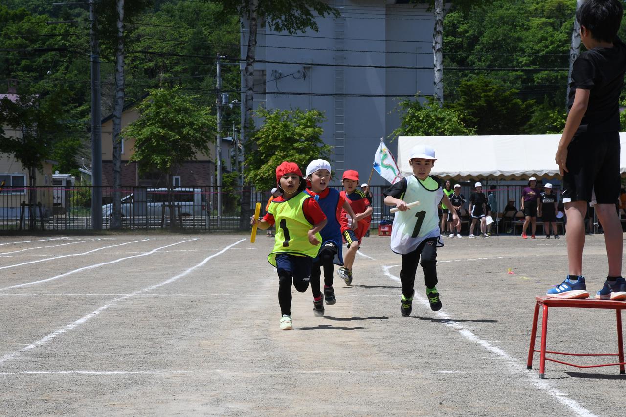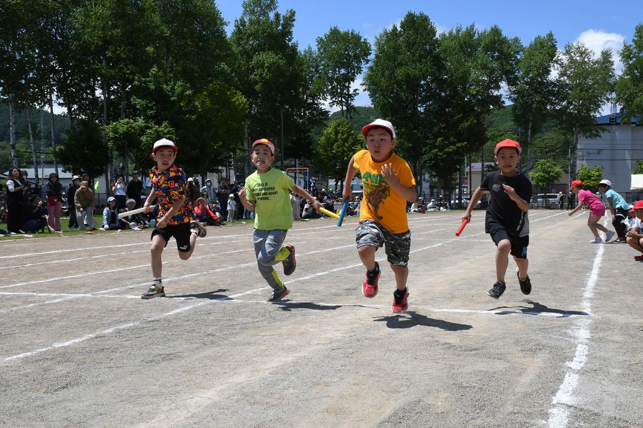 児童たちは大きな声で声援を送りながら、各団で作った旗を振ったり、太鼓を叩いたりと応援にも熱が入り、今年のテーマ「ねらいは優勝、仲間とゴールへさぁ行こう!!」の下、個人種目やよさこい、リレーなどの競技に一生懸命取り組みました。
