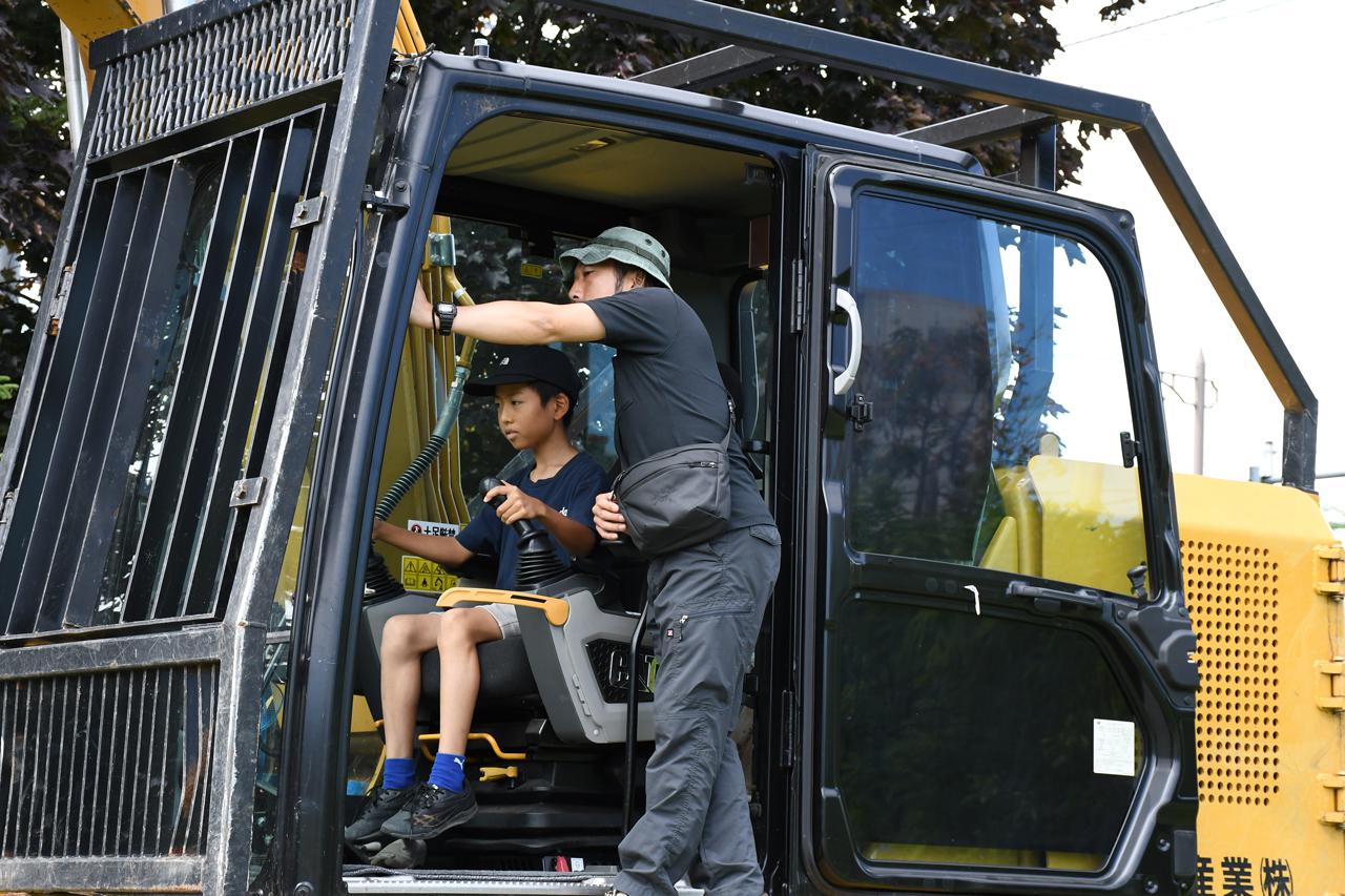 積み木体験をした満仁崎大夢さん(小学5年)は「重機に乗ることができて楽しかった。自分の目で見ているよりも機械を正確に動かすことは難しかった」とうれしそうに感想を話しました。また、会場には、キッチンカーなどが参加した飲食店が出店し、カレーや焼き芋アイス、フライドポテトなどが販売され、にぎわいを見せていました。