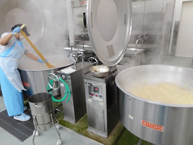 2つの釜で同時に炒めていきます。 一人で二釜担当です(一一")タイヘンサー