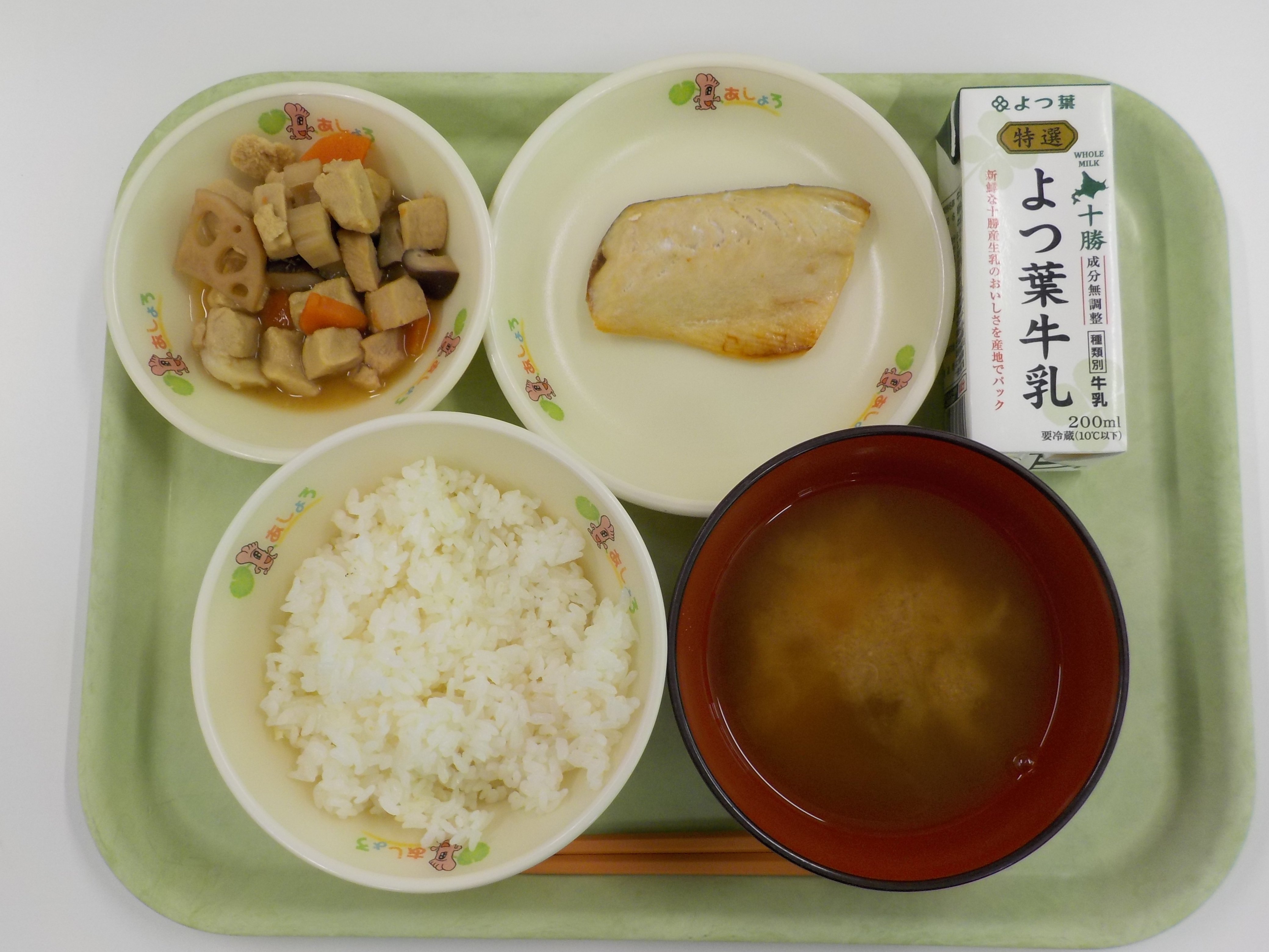 レンコン・人参・シイタケ・鶏肉・高野豆腐を五目煮にしました。